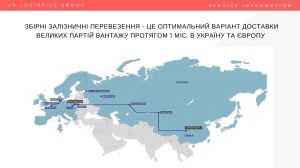 •Залізничні перевезення збірних вантажів Китай-Європа та Китай-Україна. Транзитний час "станція Китай – склад Україна": всього за 21-27 днів;